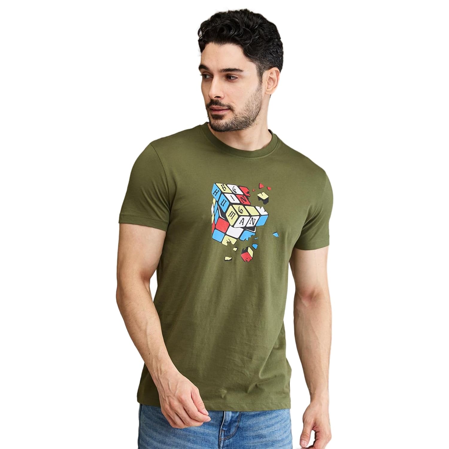 Men's Graphic Printed 100% Cotton T-Shirt - Regular Fit, Round Neck, Half Sleeves