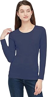 Women's Classic Long Sleeve T-Shirt, Navy Blue, Casual Round Neck, Cotton Blend, Full Sleeves