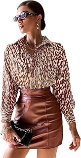 Women's Brown Abstract Straight Polyester Spread Collar Shirt (SD842_S)