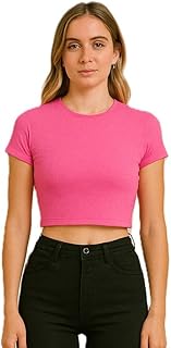 Women's High/Turtle Neck Short Sleeves Stylish Casual Crop Top, 17 Inches