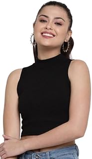 Women’s High Neck Ribbed Top Long Sleeve Polycotton Stretchable Slim Fit Navel Length Casual Winter Top for Girls