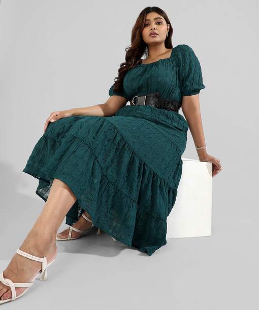 Women A-line Dark Green Above Knee/Mid Thigh Length Dre...
