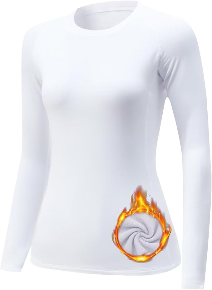 Long Sleeve Running Top Womens with Thumb Hole Compression Thermal Base Layer Ladies Fleece