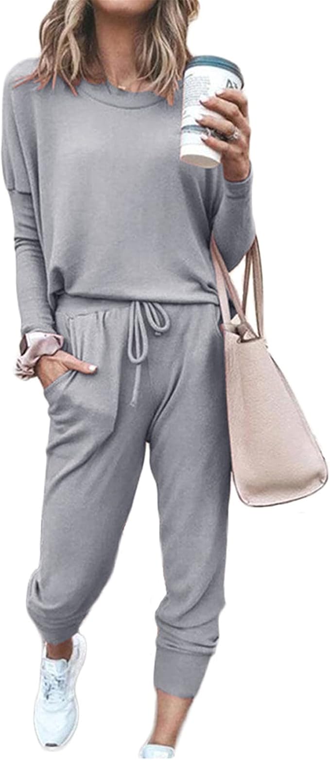 Women's 2 Piece Long Sleeve Tracksuit Loungewear Set Plus Size Crew Neck Sweatshirt and Drawstring Baggy Jogger Pant