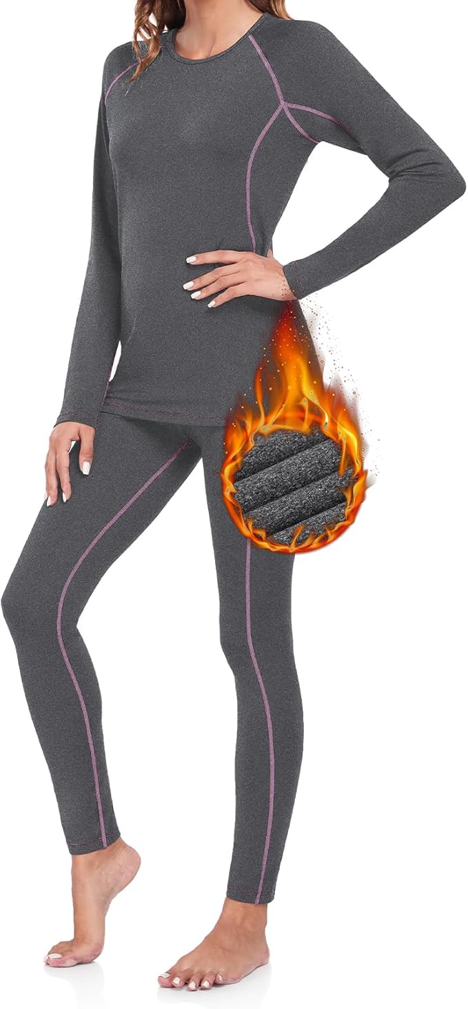 Womens Base Layer Breathable Long Sleeve Ladies Thermal Underwear Set Quick Dry