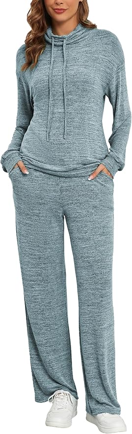 Womens Tracksuit Sets Drawstring Long Sleeve Pullover Top and Elastic Waist Wide Leg Pants with Pockets
